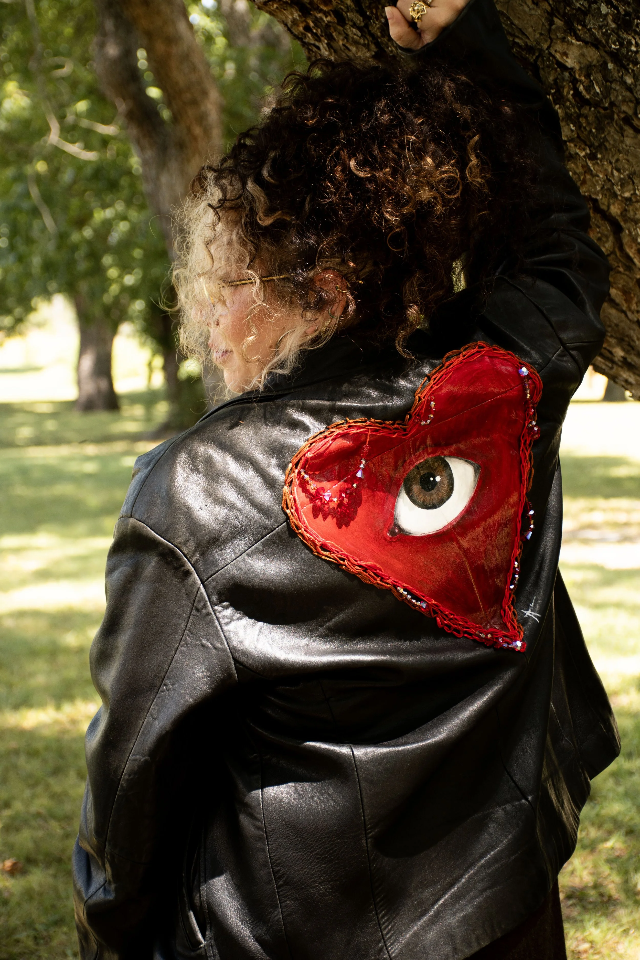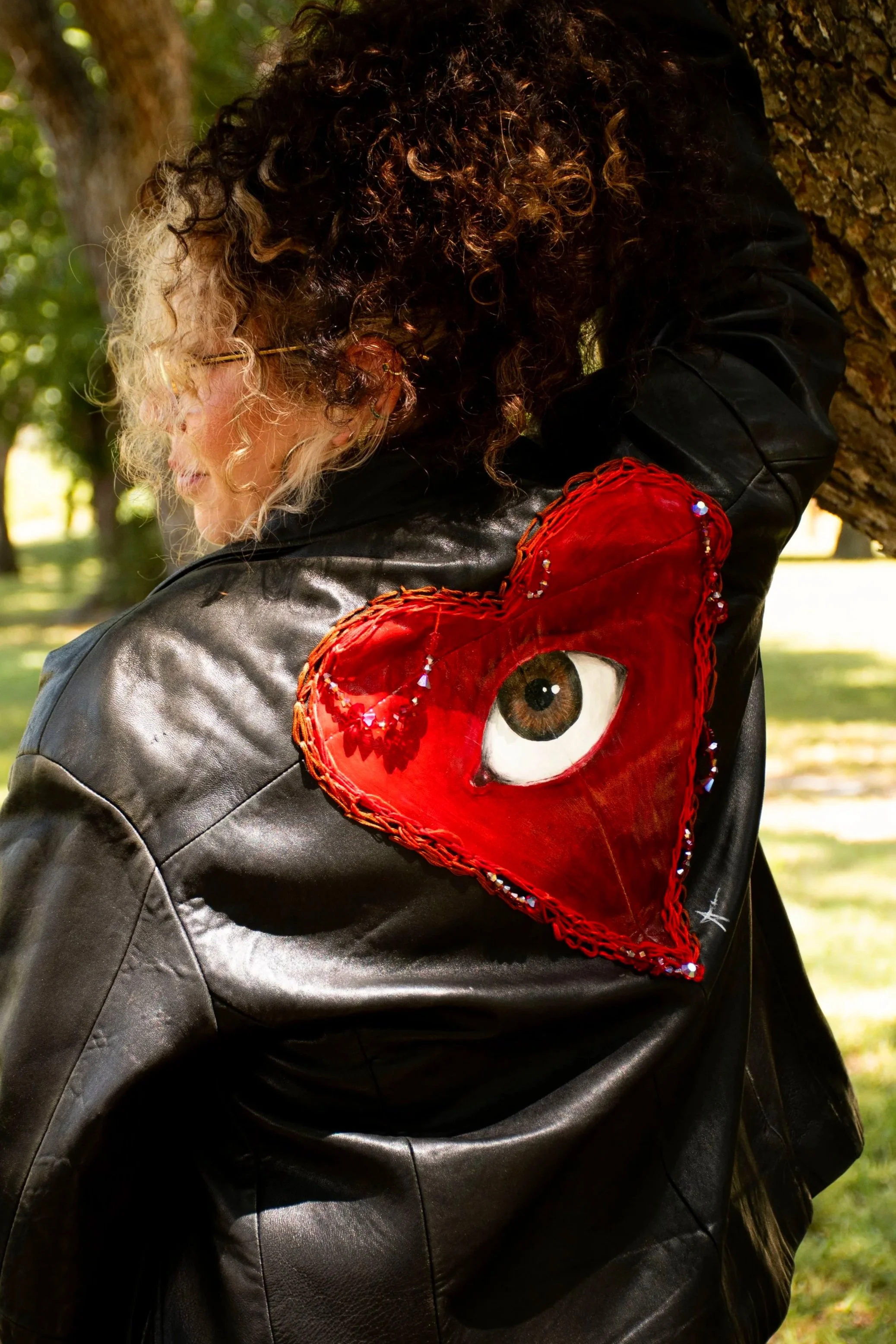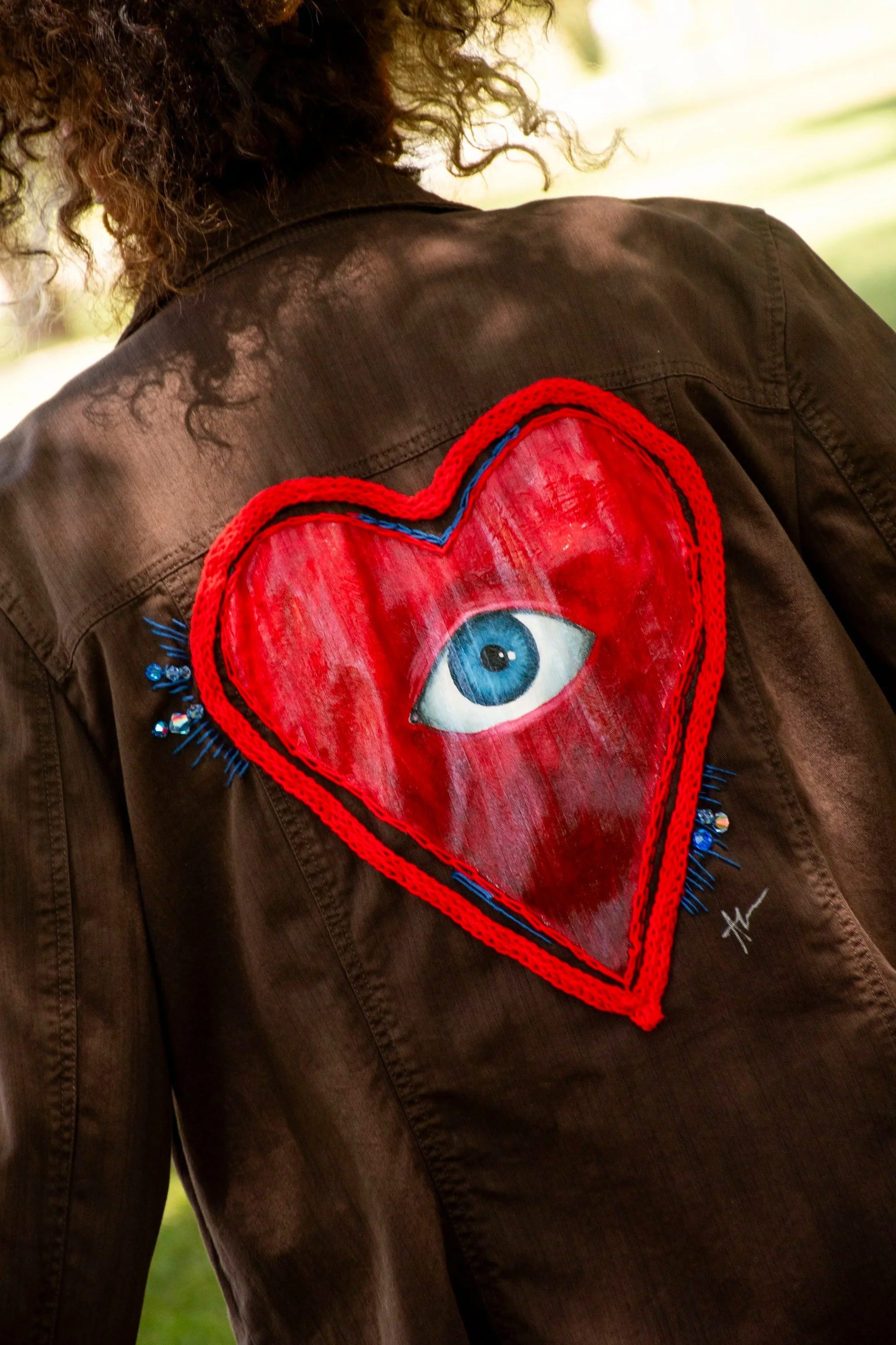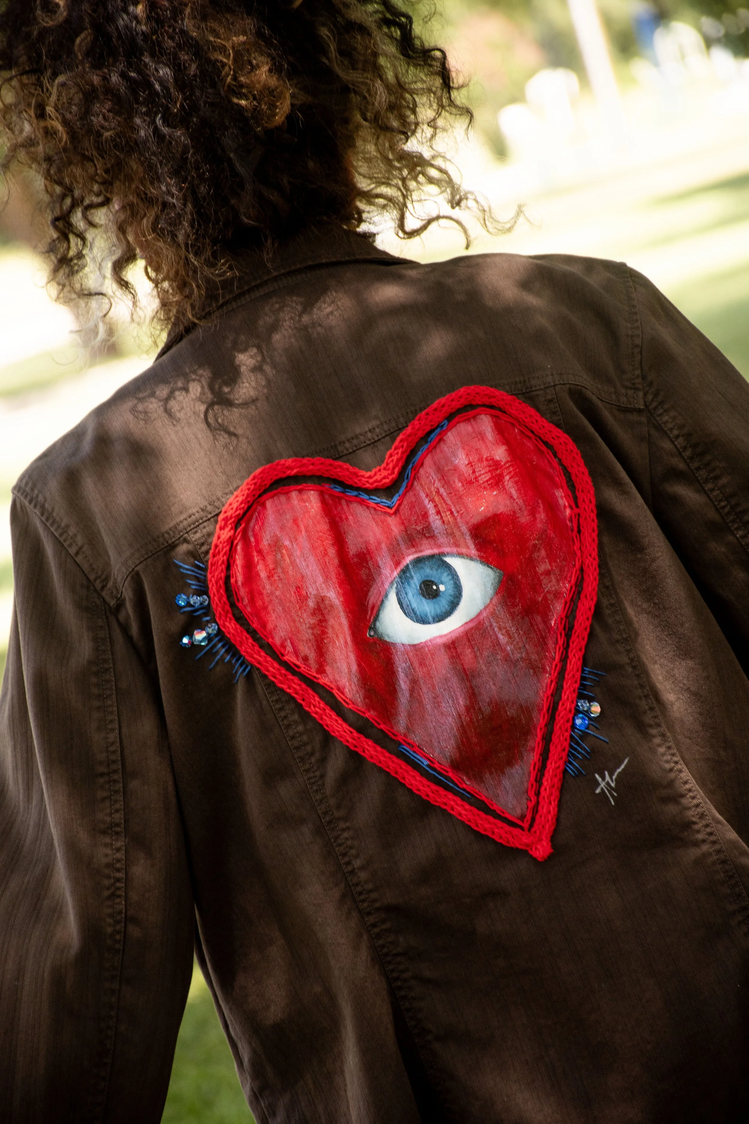 What’s better than art that you can buy and hang? Perhaps art that you can wear. This collection of hand-painted jackets was inspired by my fascination with eyes and how, throughout history, they have been perceived as a means of protection.